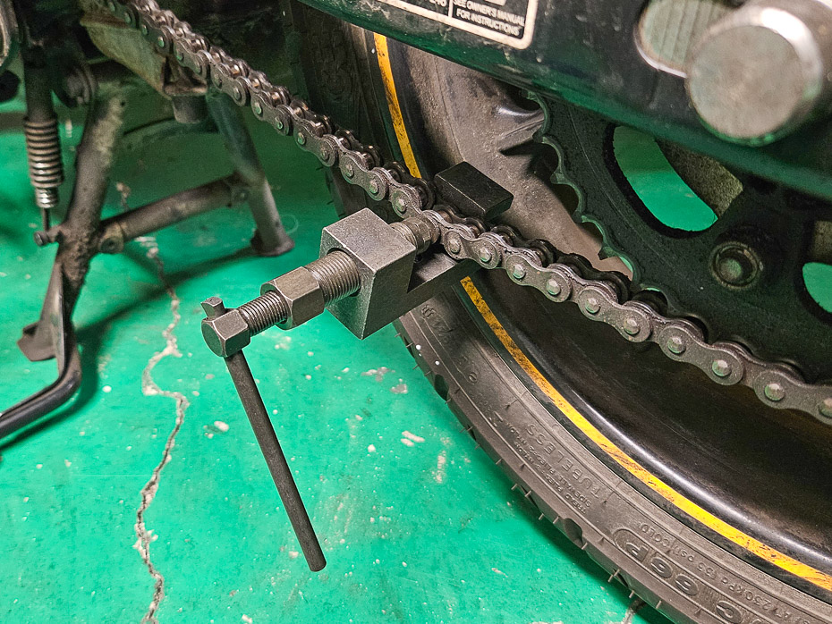연결클립이 반대로 끼워져 있다. 이 상태로 3일간 오토바이 여행을 갔었는데 중간에 알아서 천천히 이동했었다. 달리다가 체인 끊어 질까봐... 풀러서 반대로 끼워야 하는데 되게 귀찮아서 그냥 타고 있는 상태.