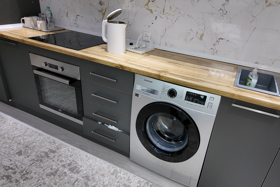 인덕션, 오븐, 냉장고, 각종 요리 도구들이 갖춰져 있는데 요리는 하지 않았다. 오직 빨래.