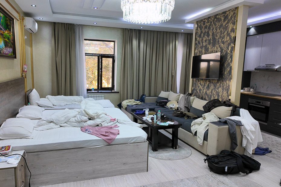3명 2일 숙박 137.70 달러 현금 지급. 무조건 현금을 받는다. 사진에 보이는 건물이름은 FIRDAVSI HOTEL 이라고 적혀 있는 곳이다. 내가 이용하는 파노라마 호텔 체크인 1층에서 하는게 아니라 7층에서 한다. 타지키스탄은 10일 이내는 거주지 등록증이 필요 없다.