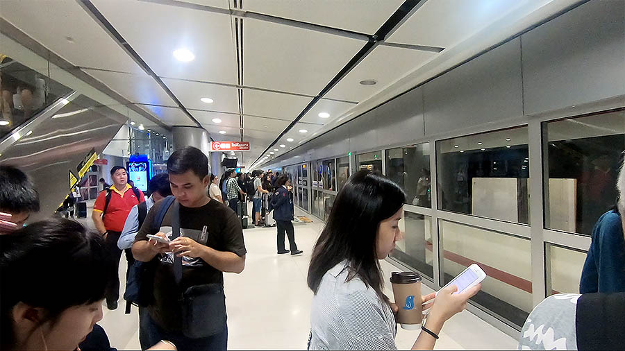 공항안에서 당황하지 말고, 그냥 밖으로 나오면 된다. 나는 현금 인출을 할려고 달러와 태국돈을 바꾸지 않고 그냥 여행을 했다. 사진 정면에 보이는 방향으로 지하철은 타기 위해 이동.
