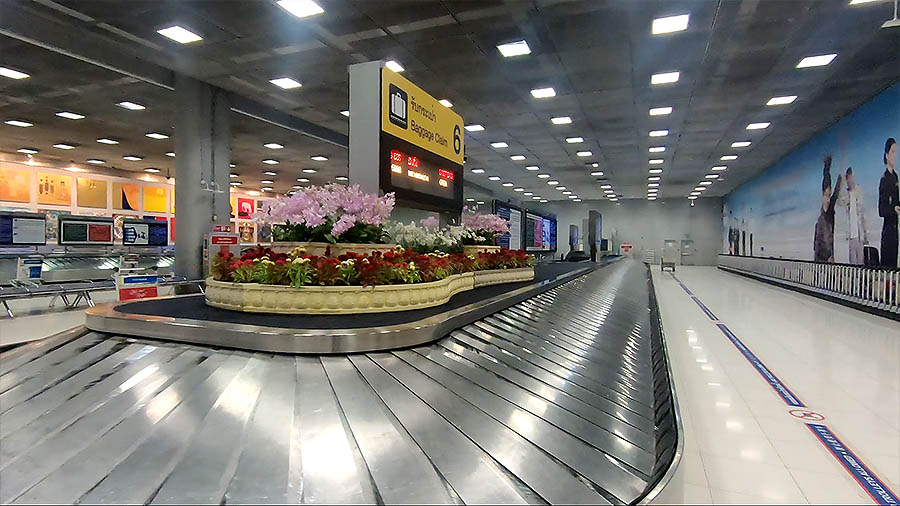 공항에 도착해서, 전광판에 나타난 6번으로 가서 가방을 찾는데, 하나도 없다.