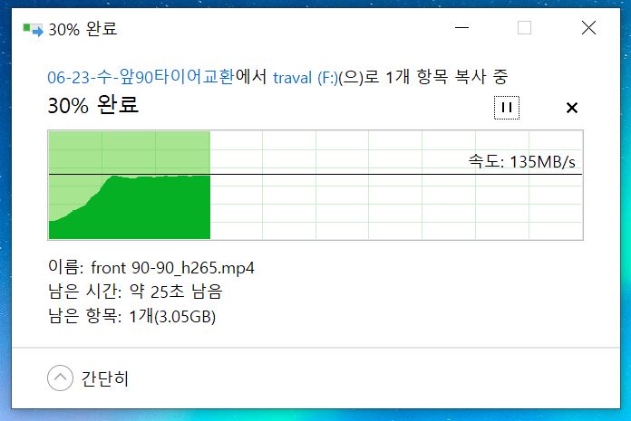SSD 디스크에 있는걸 USB3.0 연결해서 도시바 외장하드 4T 속도로 쓰기 속도
