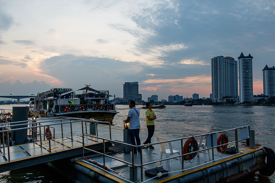 기차역에서 나와 길을 건너서 계속 걸으면 배 타는 곳에서 배타고 강을 건넙니다. 5밧.