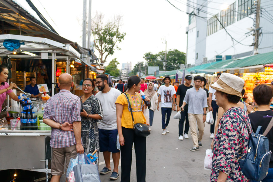 후알람풍역 바깥에는 현지인들이 날씨가 더우니까 시원한 역에서 잠을 자는 사람들이 있다.
