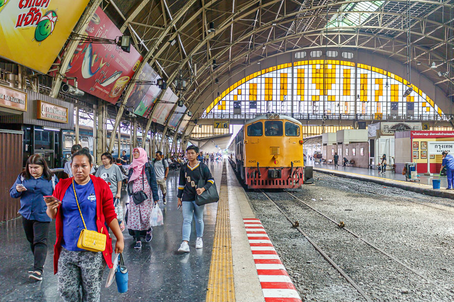 MRT 스쿰빗역에서 후알람풍 Hua Lamphong 역에서 내려, 복도를 따라 걷다보면 후알람풍 중앙역에 연결됩니다.