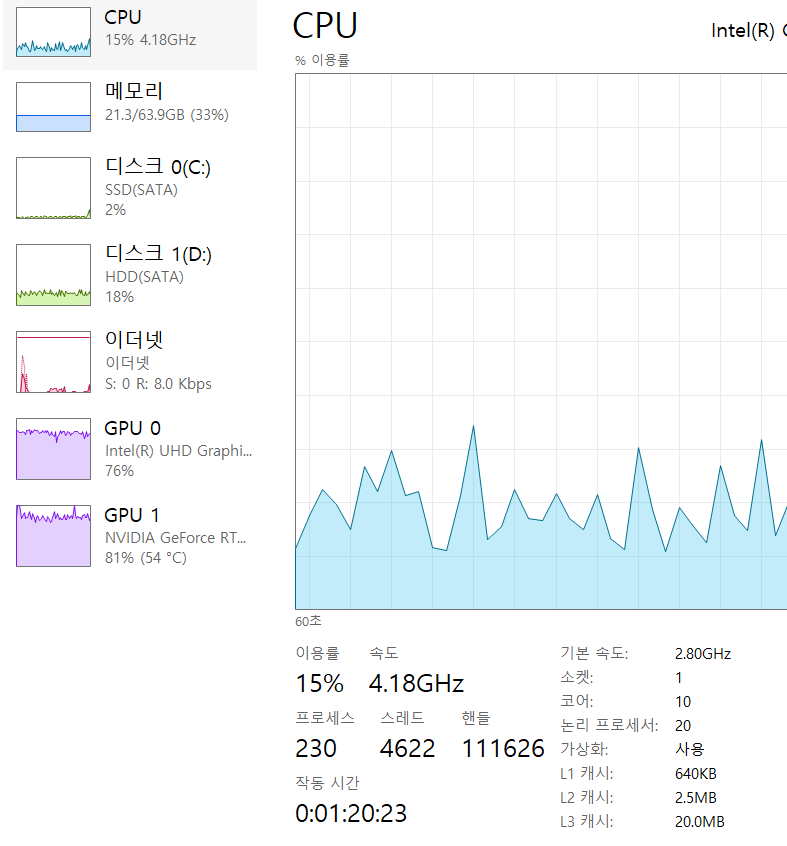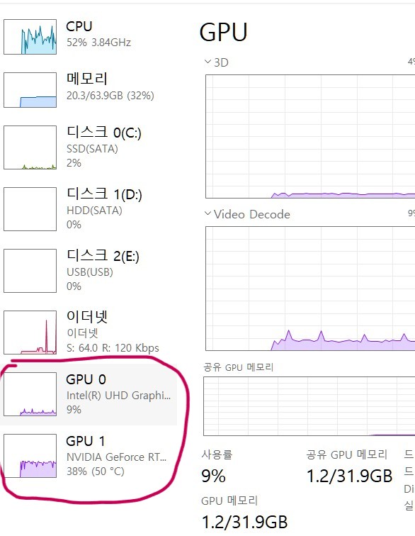 5060ti 16g 그래픽카드를 설치하고 프리미어 렌더링을 하면 갑자기 GPU 점유율이 떨어지는 현상이 발생한다.