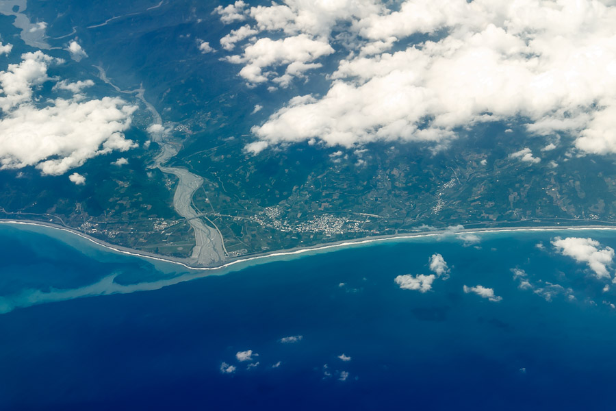 대만을 지나갈때, 창 밖으로 보니 대만 땅이 보였다.