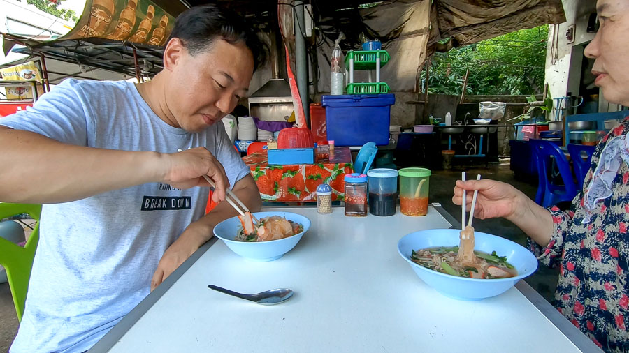 중간에 이름모를 길거리 식당에도 들려야 하고. 점심값 40밧.