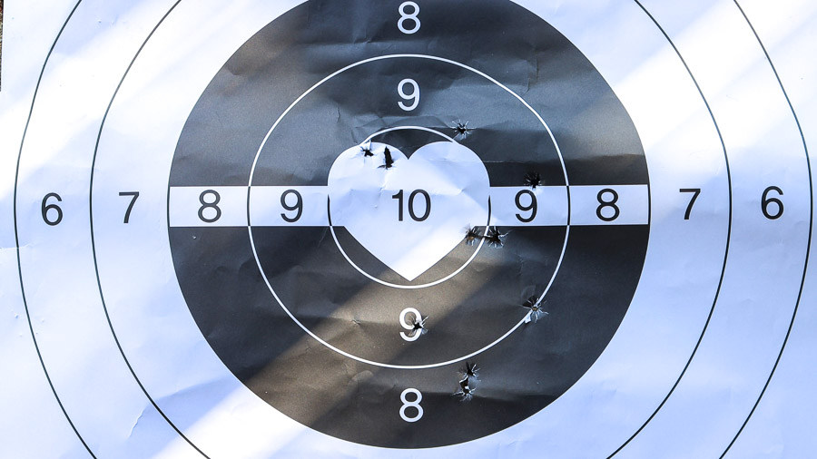 처음엔 익숙하지 않아서 위로 잡혔는데, 한발 한발 사격하면서 영점을 잡고 아래로 사격.