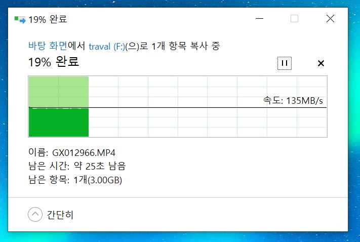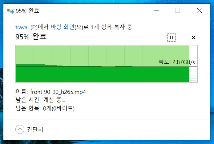 SSD 디스크에 있는걸 USB3.0 연결해서 도시바 외장하드 4T 속도로 쓰기 속도