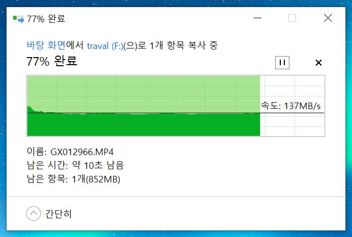 USB3.0 연결해서 137이란 쓰기 속도가 나온다.
